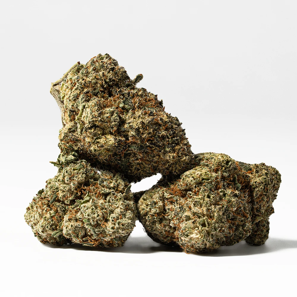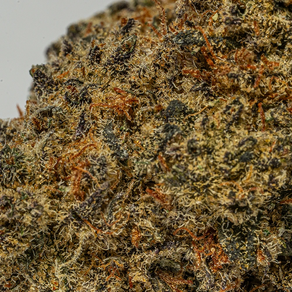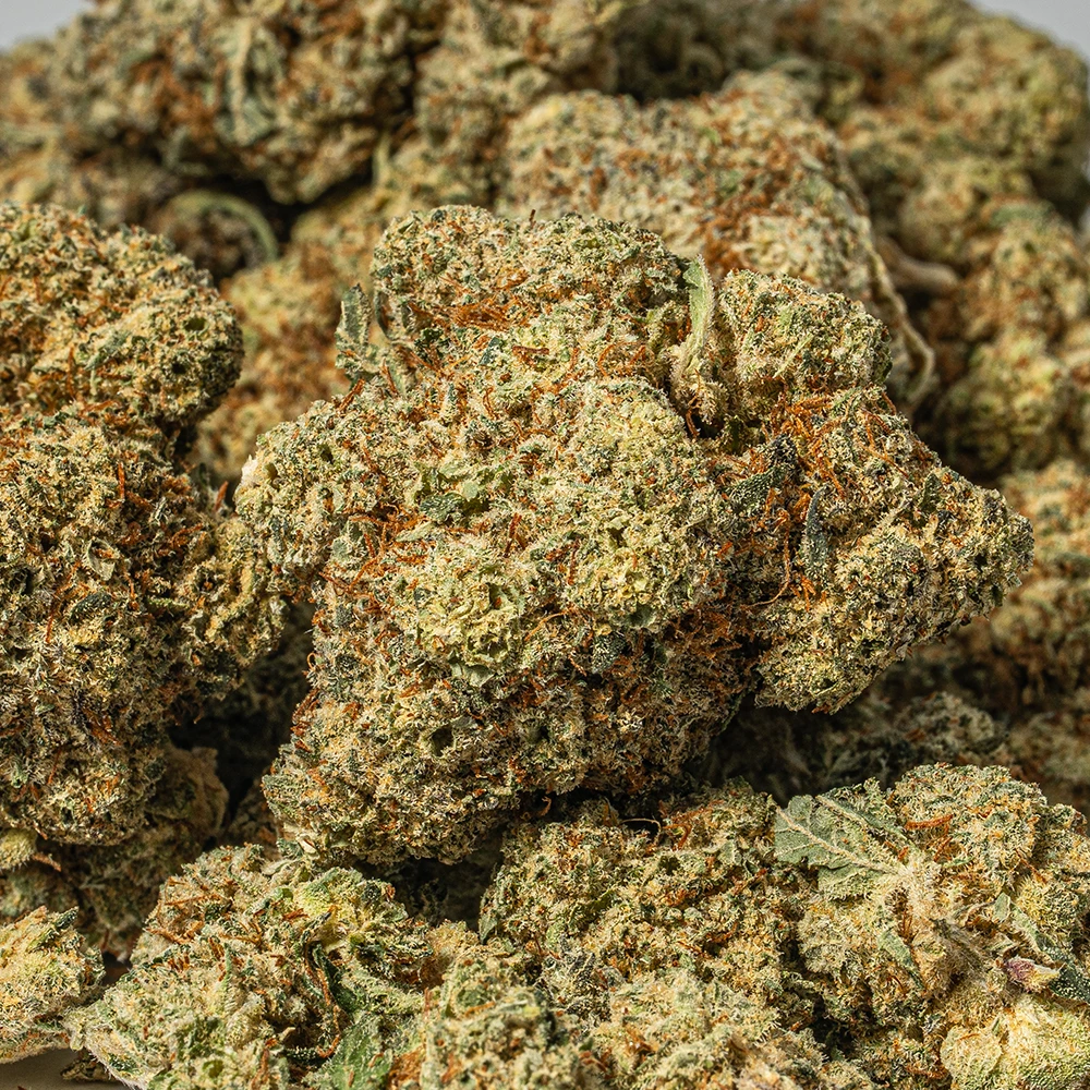 Waffle Cone is an indica dominant hybrid strain (70% indica/30% sativa) created through crossing the delicious Jet Fuel Gelato X Dosilato strains. Named for its delicious flavor and summertime high, Waffle Cone is a great choice for any classic indica lover. Like its name suggests, this bud has a super nutty and sweet creamy sugary flavor with hints of fresh cherries and sweet fruity berries, too. The aroma is very similar, with a fresh bouquet of sweet fruits and a touch of creamy nuttiness. The Waffle Cone high is one that’s perfect for a lazy day spent at home, with soothing and calming effects that will have your mind feeling at ease while your body becomes heavy and couch-locked. You’ll feel lifted with a stimulating sense of euphoria that instantly pushes out any negative or racing thoughts. At the same time, a physical tingle will creep into your body, leaving you feeling totally stimulated and completely relaxed from head to toe. In combination with its high 24-26% average THC level, these effects make Waffle Cone perfect for treating chronic pain, muscle spasms or cramps and inflammation. This bud has rounded dark olive green nugs with thick orange hairs and frosty milky white crystal trichomes.